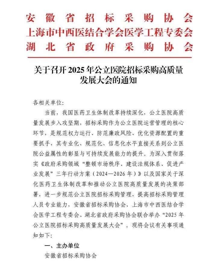 关于召开2025年公立医院招标采购高质量发展大会的通知